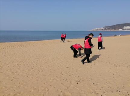 單獨行動撿拾塑料瓶、零食包裝袋、煙頭等丟棄物,有的二人成隊仔細清理沙灘中的碎石、玻璃等尖銳雜物,穿梭忙碌的身影構成了一道靚麗的風景線!沙灘上不時有游客從志愿者們身邊走過,有的駐足微笑點頭示意,有的教導隨行的孩子不可以隨地亂扔垃圾。令人欣喜的是在志愿者們的感召下,一些游客也主動加入到隊伍中來撿拾垃圾……經過二個多小時的努力,志愿者們共清理出垃圾10余袋,放眼望去海水浴場沙灘煥然一新!