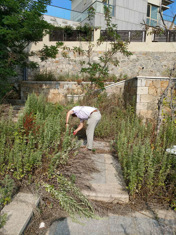 前幾天,物管中心去查看一處轉(zhuǎn)交過(guò)來(lái)的資產(chǎn),一進(jìn)院子,雜草叢生。唐建民一邊說(shuō)著:“這哪像一戶(hù)人家?!币贿厪能?chē)上拿出一只剪冬青的剪刀,就冒著烈日收拾起雜草來(lái)。
